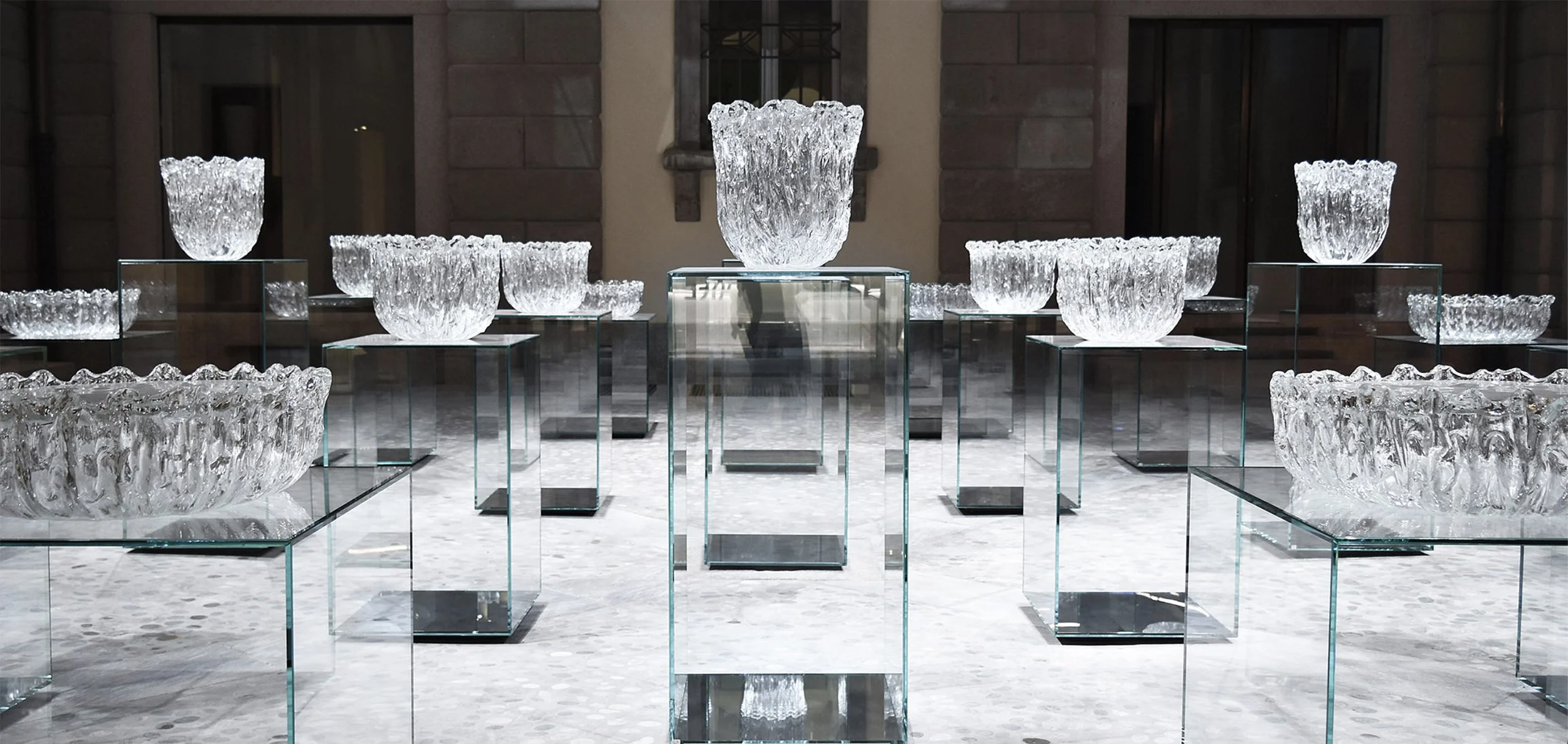 Finding inspiration in the series of tables by Tokujin Yoshioka for Glas Italia (2017). Produced from Murano glass, the collection features several sizes with each piece unique. Available now on order.